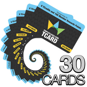 Spread the word about TripleClicks.com and attract new customers with TripleClicks TCards! These standard plastic cards come in packs of 30, feature an attractive TripleClicks logo design, and are redeemable for 6 TCredits and 100 MRP each at TripleClicks.com.