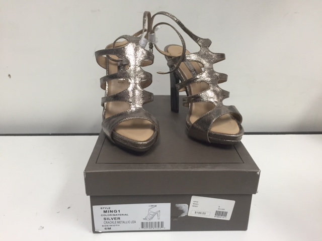NEW WOMEN'S AUTHENTIC BCBG MAXARZRIA SILVER METALLIC HIGH HEEL SHOES